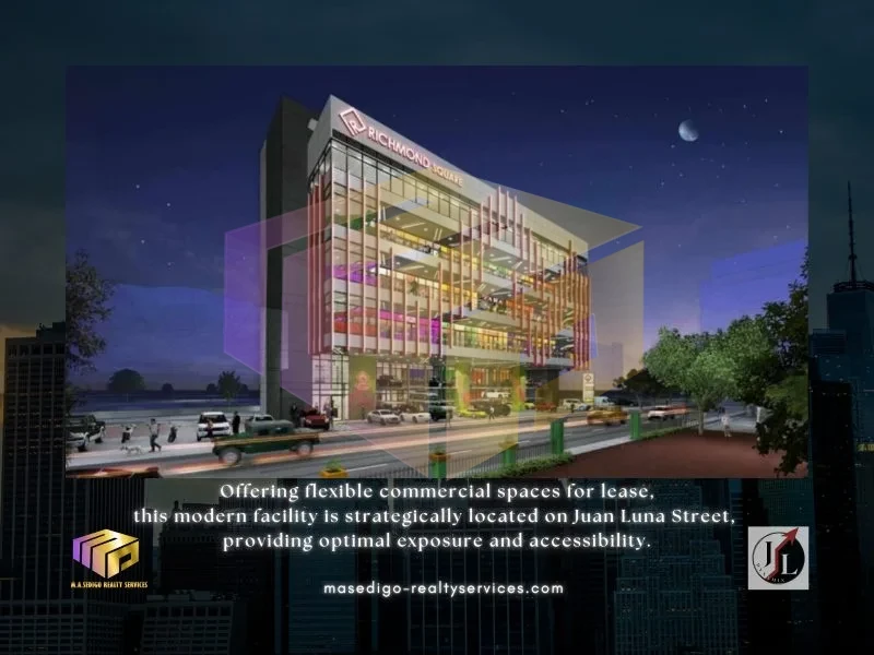 Welcome to Richmond Square, where your business can thrive in the bustling heart of Manila! Offering flexible commercial spaces for lease, this modern facility is strategically located on Juan Luna Street, providing optimal exposure and accessibility. This premier commercial hub offers versatile spaces tailored for success and growth in a dynamic urban setting.